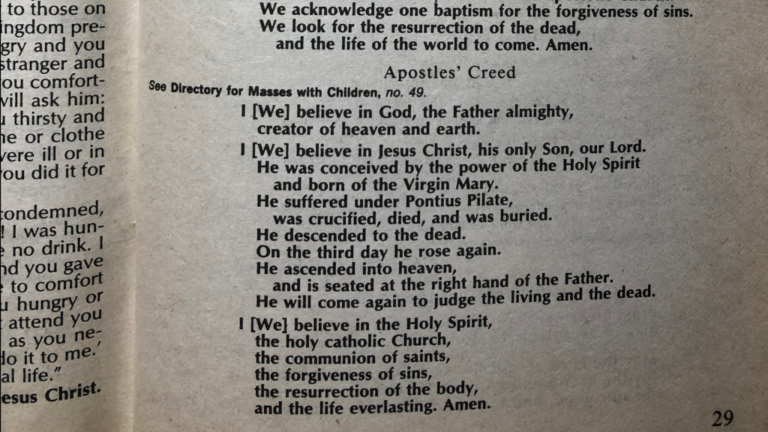 If you were a practicing Roman Catholic in the 1970’s & 1980’s, you’ll remember “The Apostle’s Creed,” which we memorized or recited together by reading our missalette books during Mass.